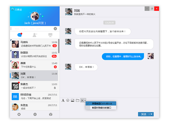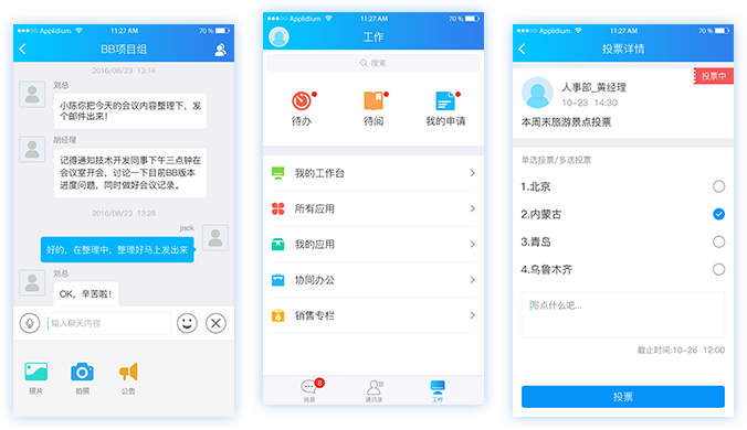业务处理、沟通协作、知识共享、客户服务带组织架构通讯录,企业内部,上下游合作伙伴轻松连接,可集成的企业即时通讯平台