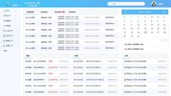 三科云企业办公平台立足于企业私有云,掌握移动互联网、大数据、云计算等公有云技术,具备互联互通的能力,以此基础进行大数据挖掘、智能分析,为企业战略决策提供技术保障;